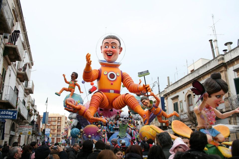 - 1° Giorno:Partenza dai luoghi prestabiliti alle ore 08.00 circa, percorso via autostrada A.14, soste di ristoro lungo il percorso. In tarda mattinata arrivo Fano, città che ospita il Carnevale più antico e più dolce d’Italia. Pranzo libero. Pomeriggio dedicato al carnevale, con le sfilate dei carri allegorici tradizionalmente realizzati in cartapesta dagli abili maestri fanesi da cui verranno gettati dolciumi: ogni anno una media di 180 quintali di caramelle e cioccolatini piovono dai carri allegorici durante le sfilate. Rientro previsto in tarda serata.