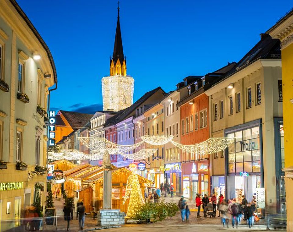 - 4° Giorno:Prima colazione in hotel e mattinata dedicata alla visita di Villach. Incontro con la guida e visita di questa città caratterizzata da un romantico centro storico ed attraversata dal fiume Drava. A Villach troverete tutto ciò che rende perfetto il periodo dell'Avvento: un'atmosfera di festa, delizie gastronomiche e artigianato tradizionale. Pranzo libero. Ore 14.00 circa partenza per il rientro. Cena libera lungo il percorso.