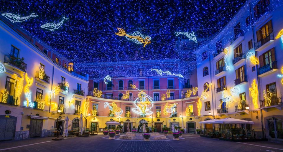 - 1° Giorno:Partenza dai luoghi prestabiliti alle ore 6.00 circa per Salerno. Sosta di ristoro lungo il percorso. Arrivo in mattinata e visita con guida di questa splendida città sul mare. Pranzo libero. Pomeriggio libero per la visita delle famose Luci d'Artista: una spettacolare esposizione d’opere d’arte luminose allestite nelle piazze e lungo le vie della città. Ore 19.30 circa partenza per il rientro.