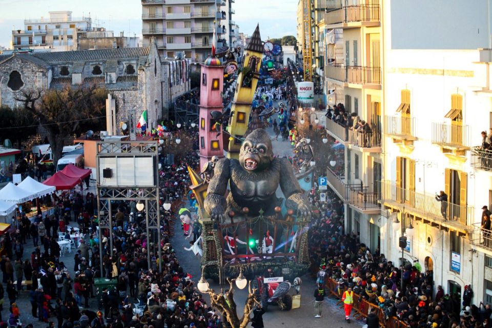 - 1° Giorno:Partenza dai luoghi prestabiliti alle ore 08.00 circa, percorso via autostrada A.14, soste di ristoro lungo il percorso. In tarda mattinata arrivo Fano, città che ospita il Carnevale più antico e più dolce d’Italia. Pranzo libero. Pomeriggio dedicato al carnevale, con le sfilate dei carri allegorici tradizionalmente realizzati in cartapesta dagli abili maestri fanesi da cui verranno gettati dolciumi: ogni anno una media di 180 quintali di caramelle e cioccolatini piovono dai carri allegorici durante le sfilate. Rientro previsto in tarda serata.